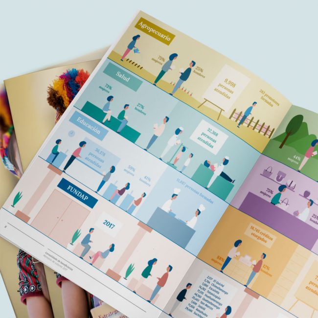Celebrating of the year’s achievements 2017 Annual Report FUNDAP is an NGO that seeks to promote the development of the lower-income sectors of Guatemala. Every year it presents the results obtained to institutions and beneficiaries in an Annual Report. In order to improve their communication, they sought to improve this Activity Report. And it is…